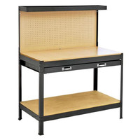 โต๊ะทำงานเหล็กพร้อมแผงพรุนและลิ้นชัก